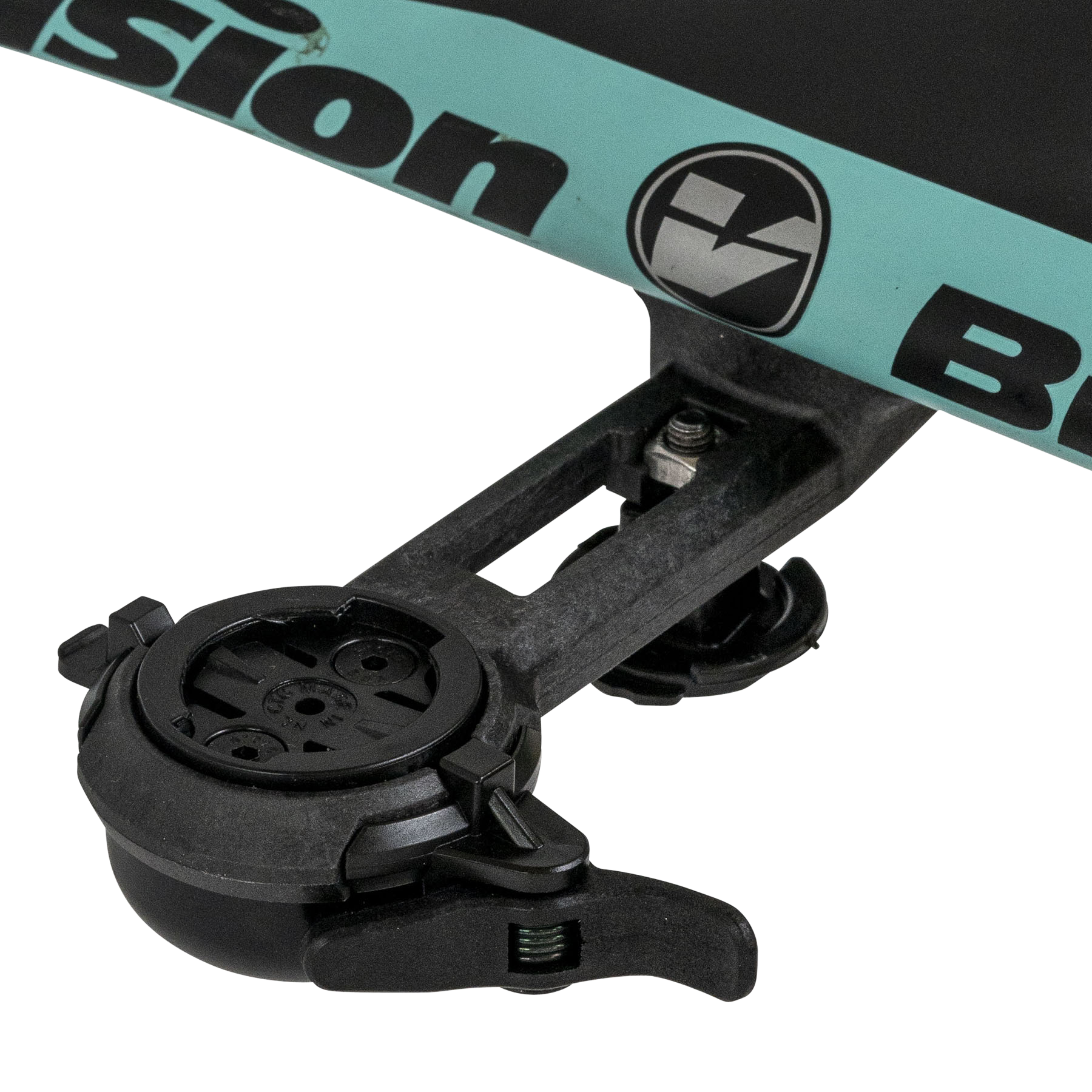 De GPS-houder bouwt voort op het bekroonde HideMyBell-concept, nu verbeterd met een nieuw belmateriaal en een innovatieve carbon spits – voor een uitzonderlijk helder en krachtig geluid. Gemaakt van carbonversterkt composiet, is deze houder zowel lichtgewicht als ongelooflijk sterk. Geen wonder dat het WorldTour-team Visma | Lease a Bike vertrouwt op deze in Nederland geproduceerde steunen! Het VM5D-model is speciaal ontworpen voor Vision Metron 5D cockpitsturen. Voor de nieuwere Vision EVO cockpits is het VE-model beschikbaar.